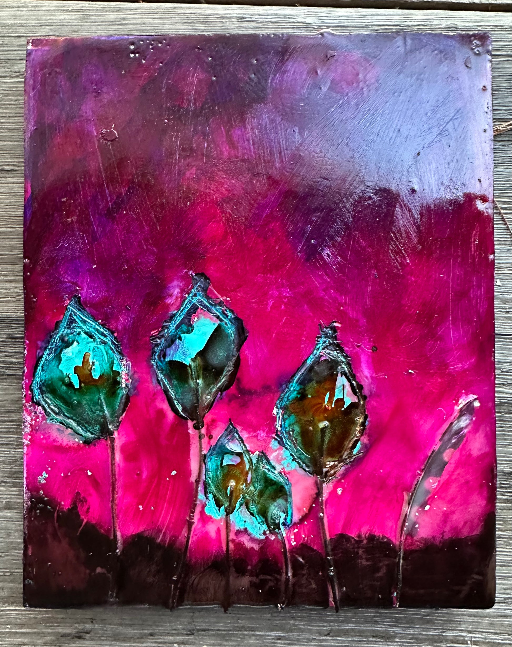 original encaustic art. Layered upon a hand made frame made from salvaged, heat treated/kiln dried pallets. Layered with oil pigment sticks, alcohol ink, and encaustic medium. Fused with flame.